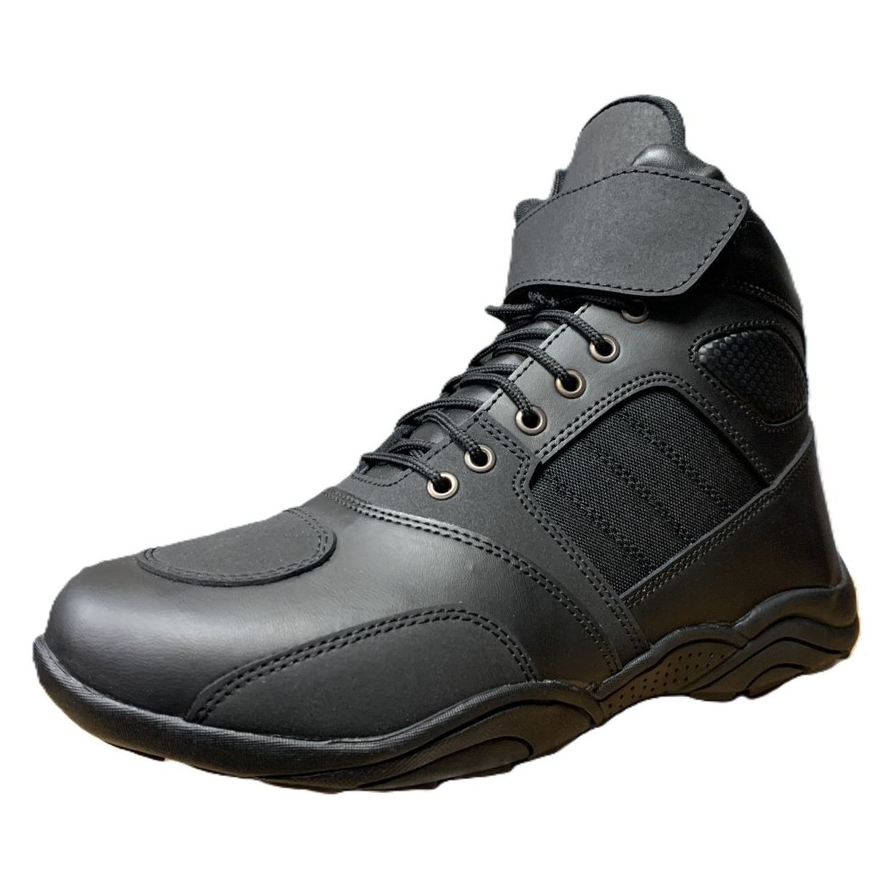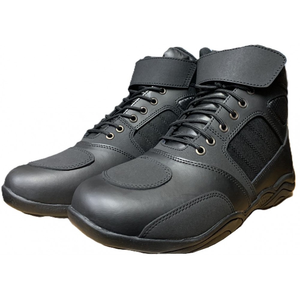 Built for the bold, the black lace-up motorcycle boot is a fusion of durability and undeniable style. Crafted from tough, high-quality leather, this boot is made to withstand the road's demands while keeping you comfortably in control. Its rugged tread grips the pavement with confidence, and the reinforced toe and heel provide extra protection where it counts. The classic lace-up design isn’t just about the look—it ensures a secure fit that moves with you, whether you're tearing down highways or navigating city streets. Power, attitude, and unbeatable resilience—this boot is more than footwear; it’s a statement. Ready to ride? This boot is.
