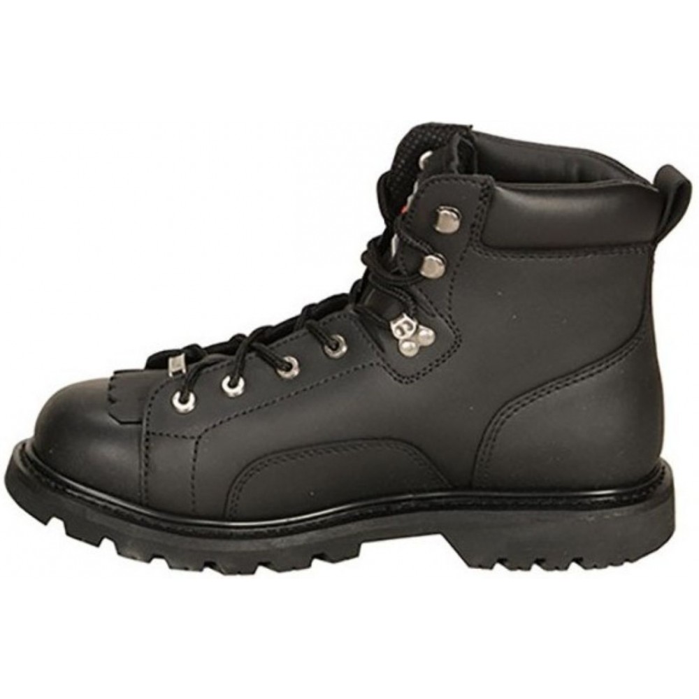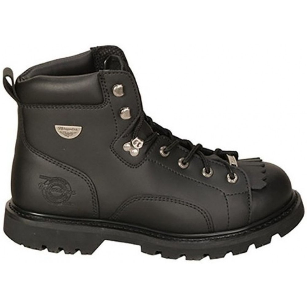 The Night Rider boot from Milwaukee Motorcycle Clothing Company is a 7-inch logger styled motorcycle boot built to last. This classic style is enhanced by the many features provided in Milwaukee boots. The upper is made of durable black action leather and is cut and formed for ease and comfort from day one. This boot laces from top to toe and includes a removable kilty for extra rain protection. Not only is the sole a welt construction made to last many, many rides, but it also features a Freedom Flex sole so that the first ride is just as comfortable as the last. With tough hardware and removable insoles these boots will stand the test of time.