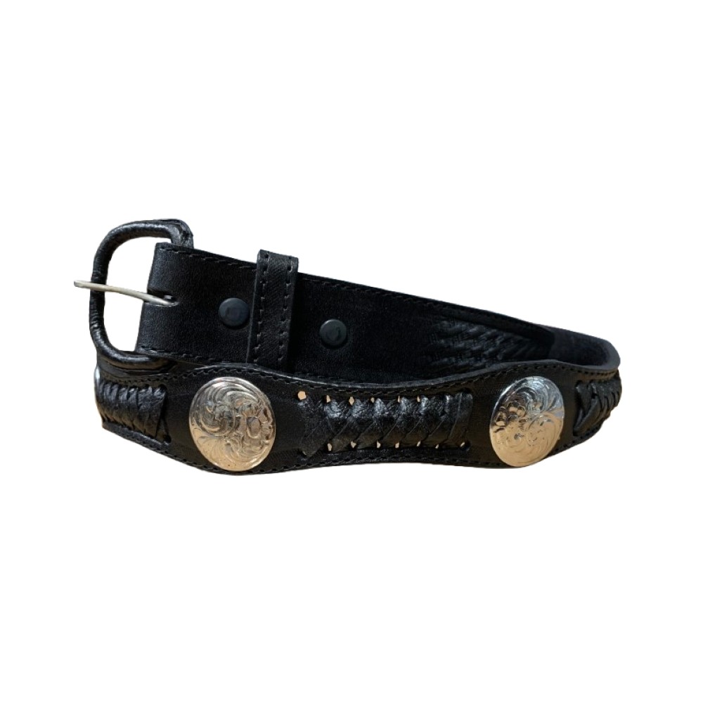 Black 100% Leather Belt, Concho Design, Removable Buckle