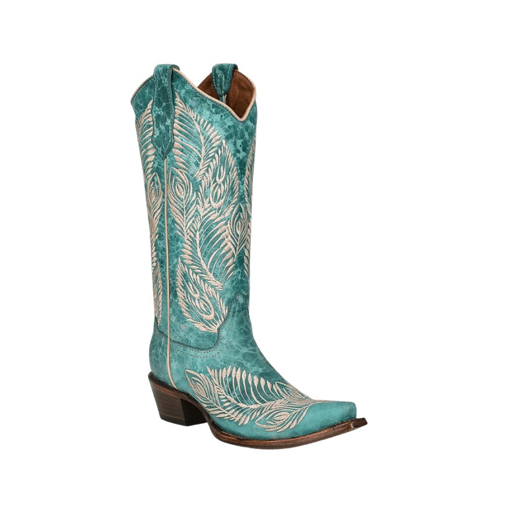 Women's Turquoise Feather Embroidery Snip Toe Western Boots by Circle G