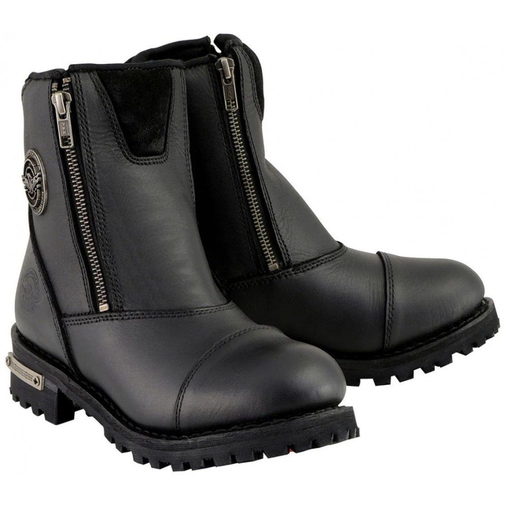 Milwaukee Leather MBM102 Men's Black Smooth Double Sided Zipper Entry Motorcycle Leather Boots