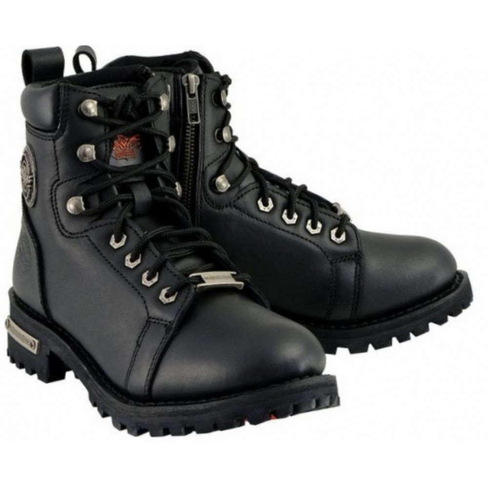 Milwaukee Leather MBL200 Women's Black Lace-Up Boots with Side Zipper Features Made of Full Grain Premium 2.2mm Thick Cowhide Waterproof Leather Lace-Up Design with Side Zipper Inside Side Zipper Entry for Easy on and off Wear Oil and Acid Resistant Out-Sole Non-Skid and Non-Marking Tread Welt Construction Linings are Moisture Wicking Designed to Work with Your Body’s Temperature Milwaukee Signature Hardware Smart Mask Climate Control Insole with Flex Power Toe Design