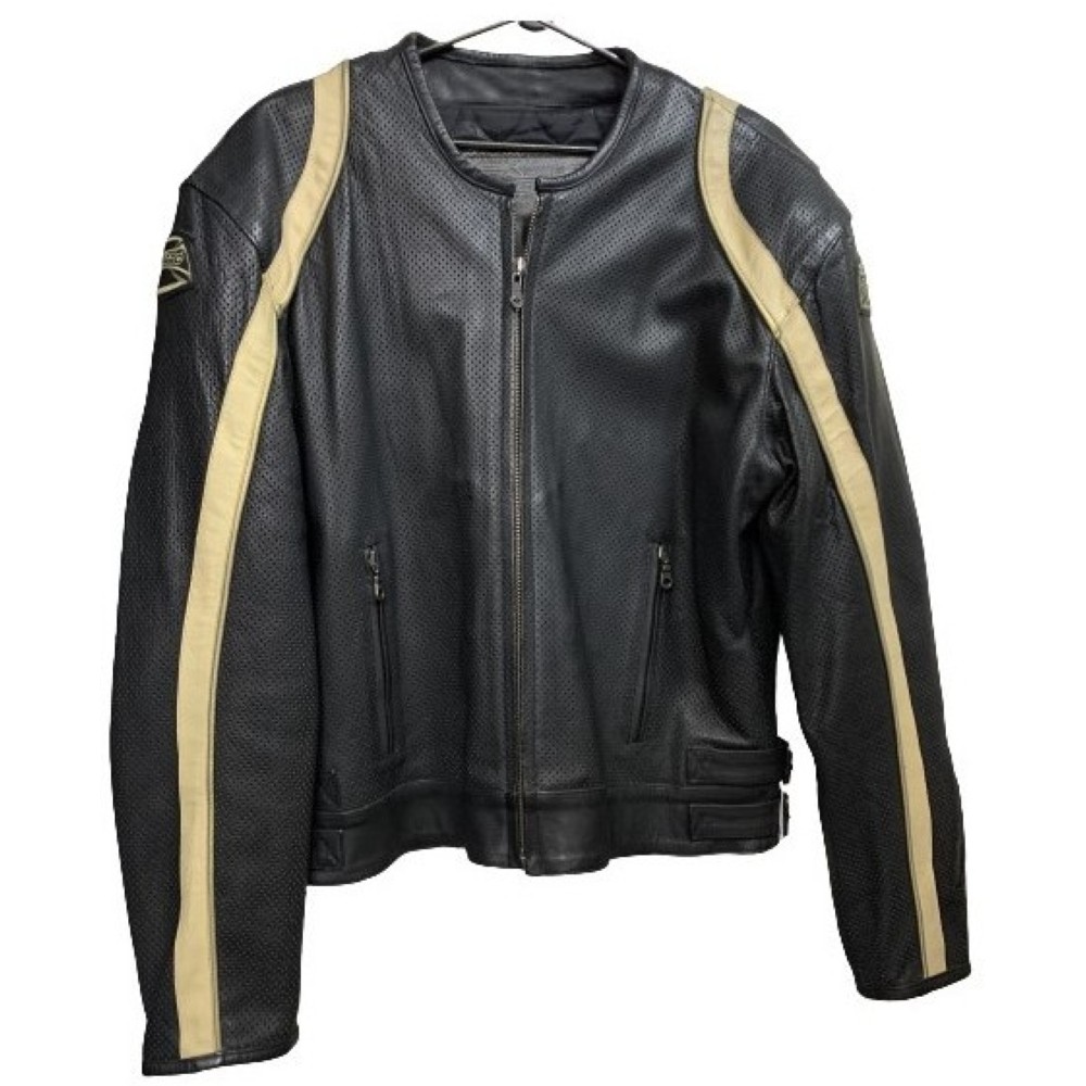 Teknic Black Perf Leather Men's Jacket with Beige Stripe